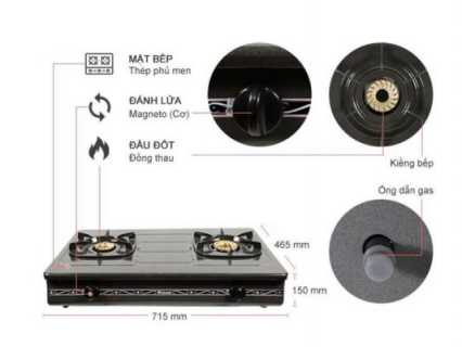 – Mặt bếp thép phủ men chống dính, dễ dàng lau chùi